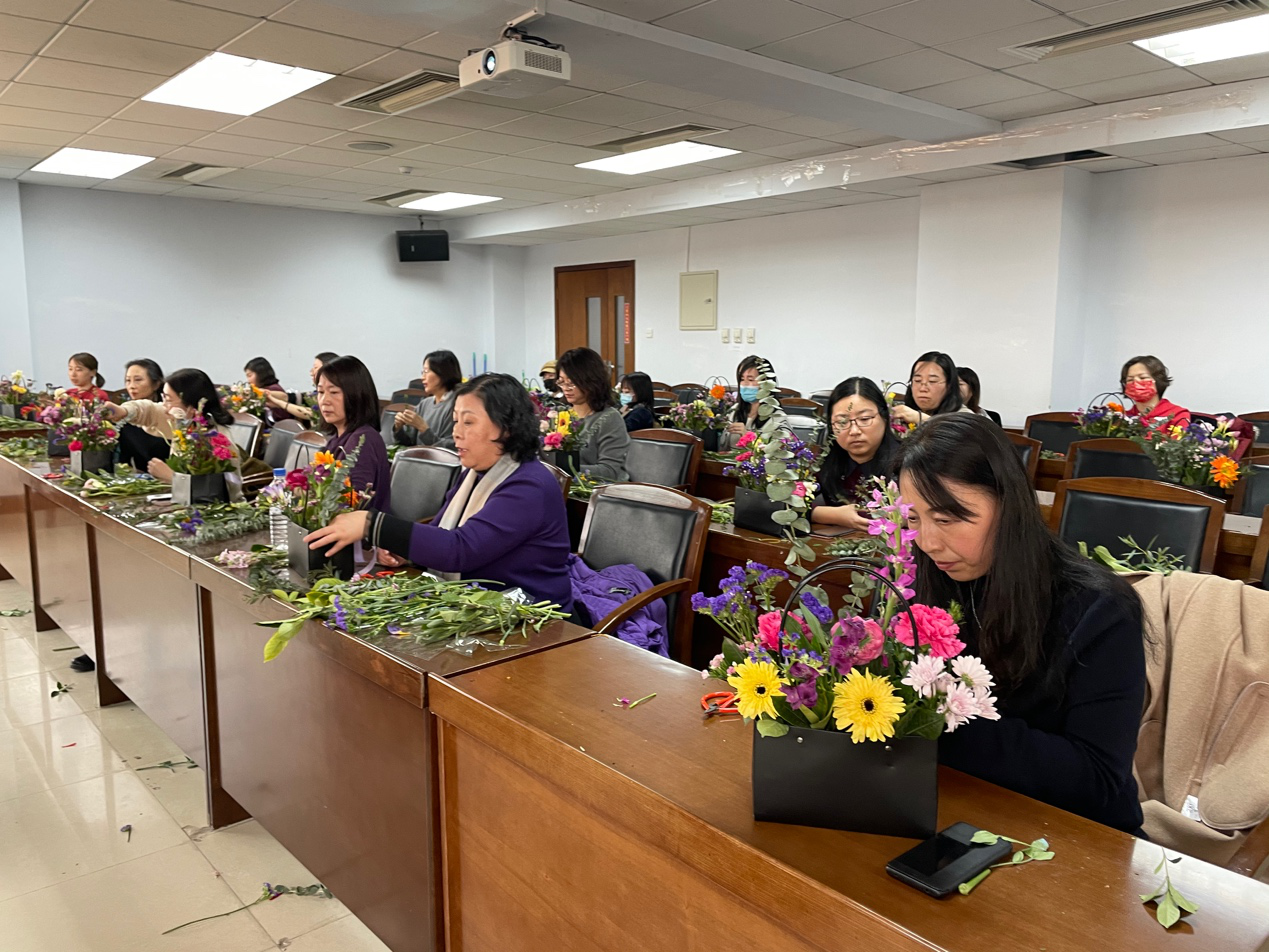 在花艺老师的悉心指导下,大家精心构思、认真搭配,在一修一剪之间,一束束别出心裁的花艺作品相继诞生,活动现场气氛活跃。