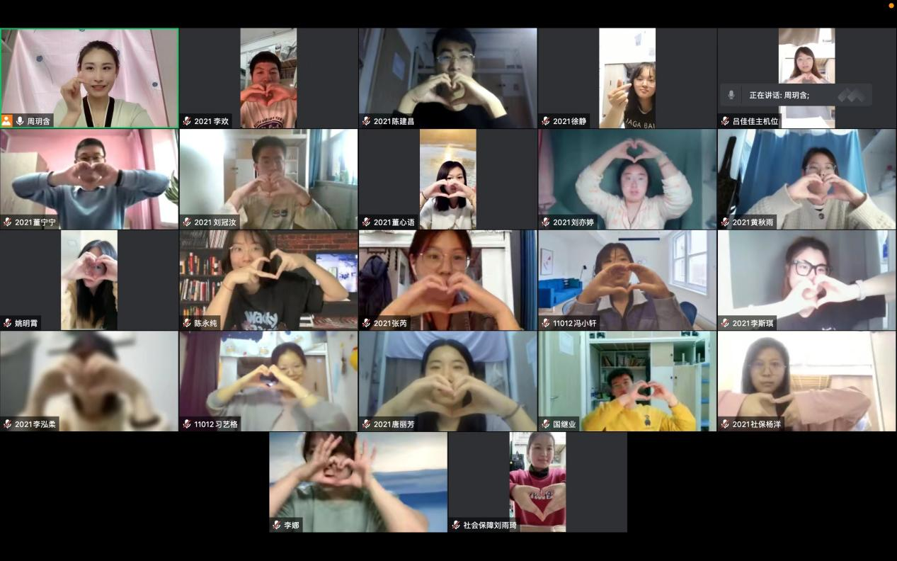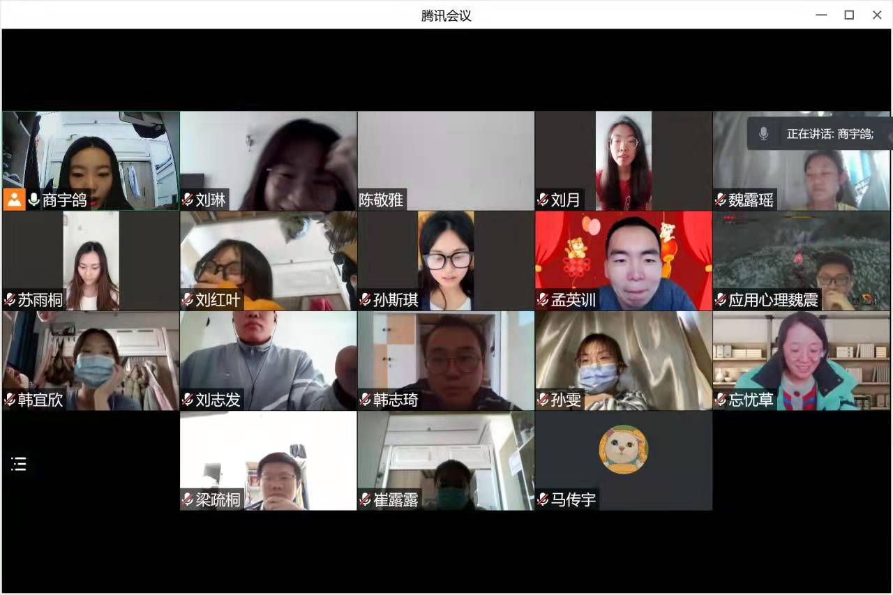 本次线上班会旨在通过有趣小游戏以及同学之间的沟通排解疫情以来封校和封寝带给我们的压抑情绪,拉近同学之间的距离,疫情无情人有情,我们不要为“情”所困,希望在艰难的时光里大家能够学会用平和的心态去面对生活和学习,保持着现在积极乐观的状态!相信人比山高,脚比路长!
