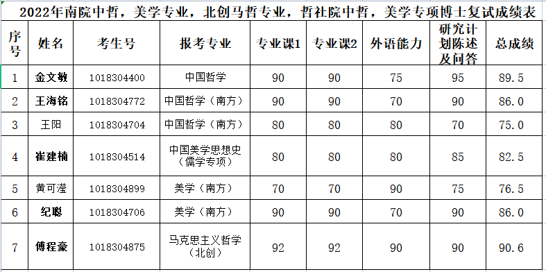 关于2022年南方研究院中国哲学专业、美学专业、创新发展研究院(北京)马克思主义哲学专业、极速飞艇 中国哲学专业、美学专业(儒学专项)复试成绩公示
