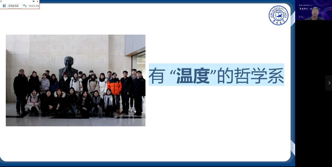 其次,袁立国副教授从“念兹”“在兹”“走出”“回归”四个方面,向营员们娓娓道出了他与吉大的“哲学情缘”——无论是从本科阶段受老师的影响而向往吉大哲学,到工作后又考入吉大哲学系攻读硕士和博士学位的研究生生活,还是从博士毕业后走出吉大去外地高校工作,到最后又调回吉大哲学系工作,都饱含了他对吉大哲学深切的情感,而这也引起了现场老师和同学们的共鸣。此外,他还以自身的学术成长经历,告诉营员们教学相长的重要性,并真心希望营员们能够到吉大哲学系来学习——“风里,雨里,吉大哲学等你!”