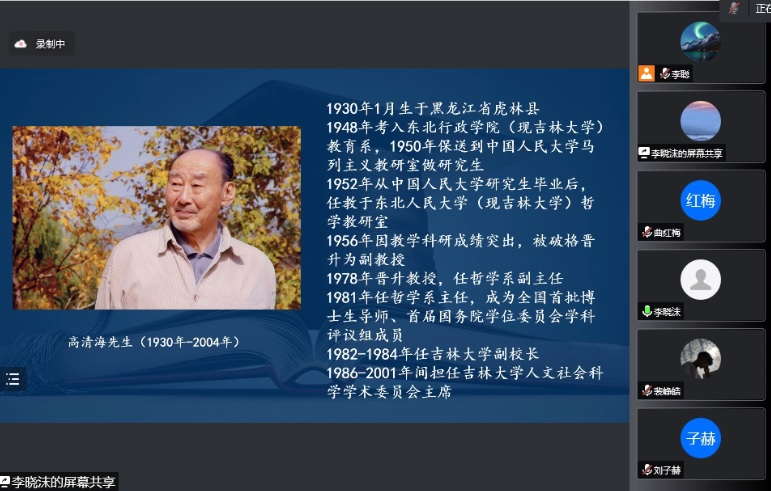科研办公室李晓沫主任在线上介绍高清海先生)