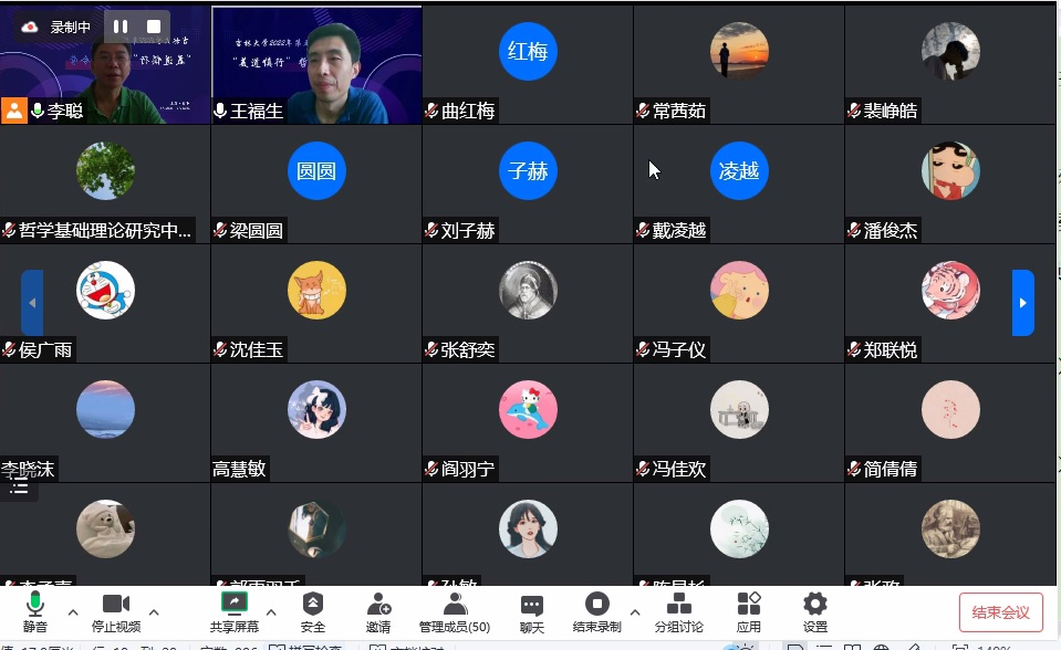 2022年“美道慎行”哲学夏令营闭营式在线上以腾讯会议的方式举行。闭营式由哲学系党支部李聪书记主持。