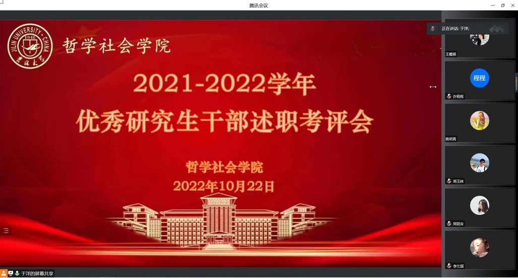 于10月22日召开2021-2022学年优秀研究生干部线上述职考评会。极速飞艇