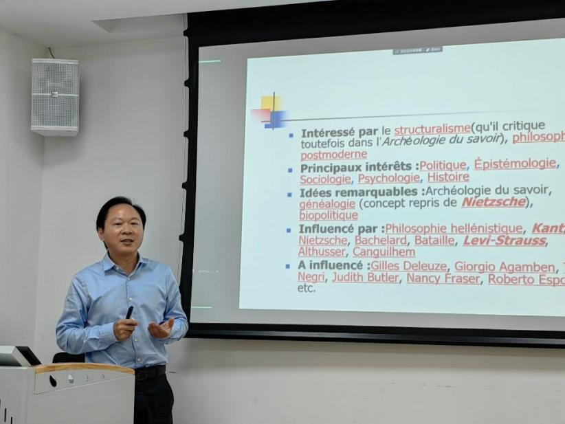 于奇智教授首先由对福柯及其思想的总体介绍开始引入讲座主题。于老师指出,米歇尔·福柯(1926—1984)是20世纪极富挑战性和反叛性的法国哲学家和思想体系史学家,在哲学、文学评论、历史学、科学史(尤其是医学史)、批判理论和知识社会学领域都产生了巨大影响,既可被视为20世纪法兰西的尼采,又因其独具特色的批判理论而可被看作20世纪法兰西的康德。“archive”、“biopolitique”“biopouvoir”“gouvernementalité”等当代哲学的重要议题都来源于福柯的原创或新释。“如何看待福柯”已经成为思想史上的一个重要且亟待予以回答的重要问题。