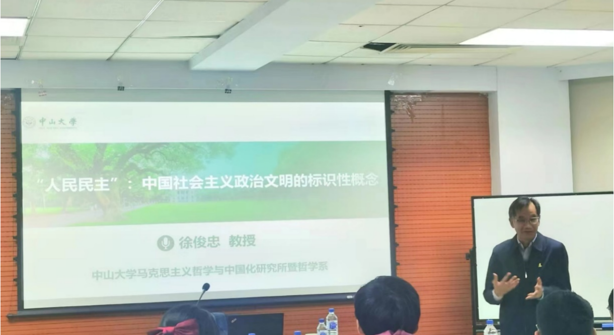 名家系列讲座第195场在东荣大厦A904会议室举办。主讲人为中山大学马克思主义哲学与中国现代化研究所暨哲学系教授、中山大学博物馆(校史馆)馆长徐俊忠教授,讲座主题为“人民民主:中国社会主义政治文明的标识性概念”。极速飞艇