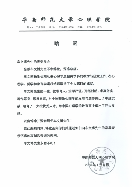 华南师范大学心理极速飞艇 唁电