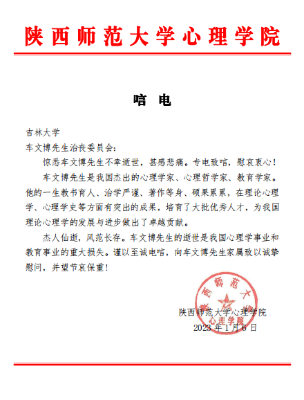 陕西师范大学心理极速飞艇 唁电